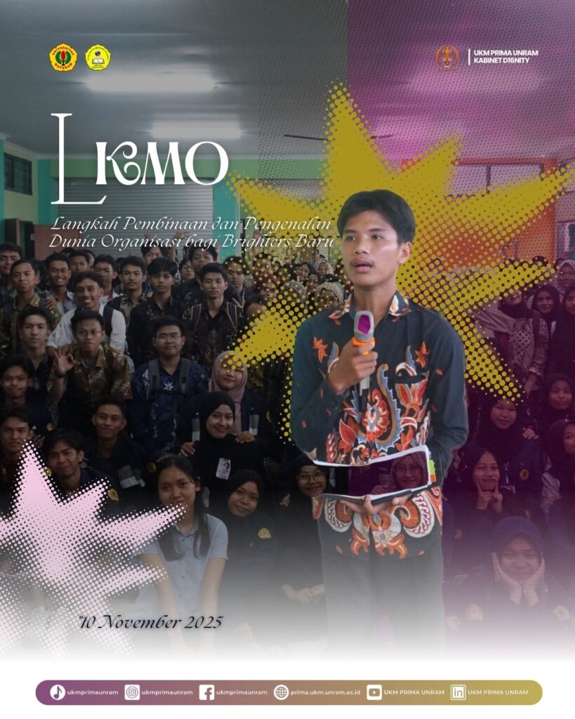 Mataram, 1 November 2025 — Unit Kegiatan Mahasiswa Penalaran, Riset, dan Ilmiah Mahasiswa (UKM PRIMA) Universitas Mataram sukses melaksanakan kegiatan Latihan Kepemimpinan Manajemen Organisasi (LKMO) 1 sebagai bagian dari rangkaian pembinaan dan pengembangan bagi brighters baru angkatan 2025.